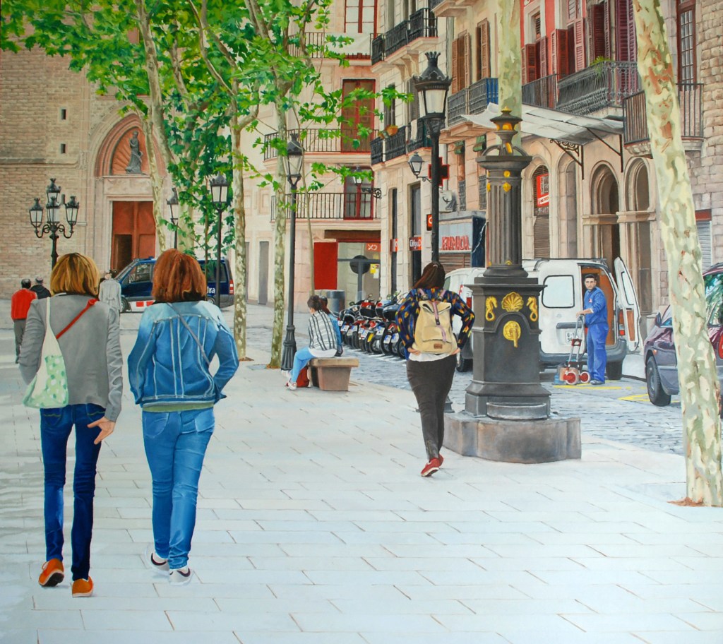 In Barcelona I stayed in the Barri Gotic district and was taken in by the wonderful range of small shops selling handmade clothing, bags, jewellery and bars open until the early hours of the morning. This area is also one of the oldest in Barcelona and has some amazing churches and public squares. Nearby is the El Born district and the painting above is of the Passeig Del Born. The tree lined boulevards with cast iron balconies are stunning the most famous of course being La Rambla.
