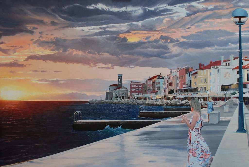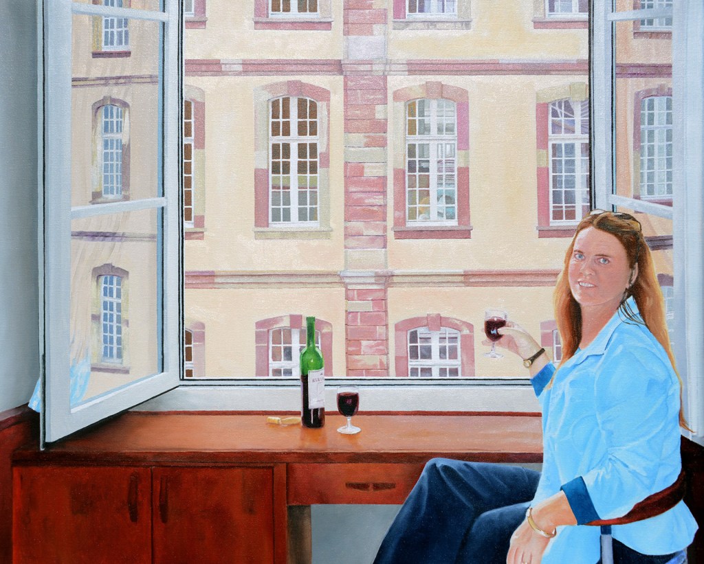 This is a commissioned work of Andrea Hicks, public artist, sculptor and educator. She has completed a range of public works in Brisbane, Newcastle and Regional Victoria and her ceramic works are held in many private collections. Andrea was full of life and loved travel, she inspired many and is sadly missed.This is from a hotel room in Salzburg from one of her many travels.