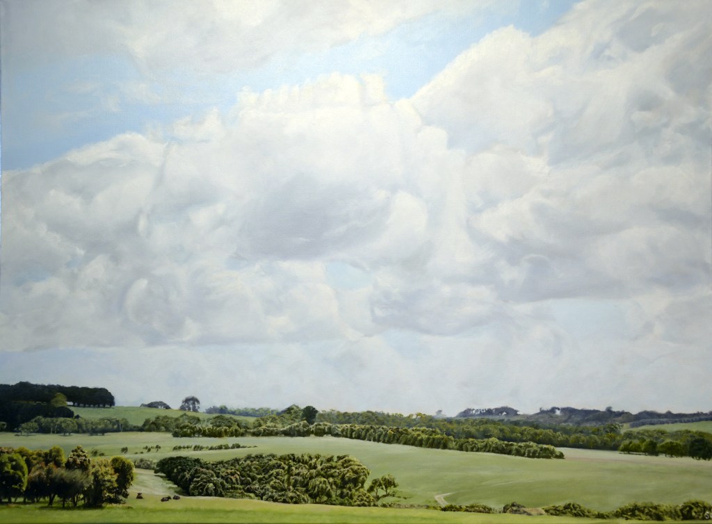 Flinders on the Mornington Peninsula is surrounded by rolling hills and stunning seascapes. This scene is of storm clouds above farmland.