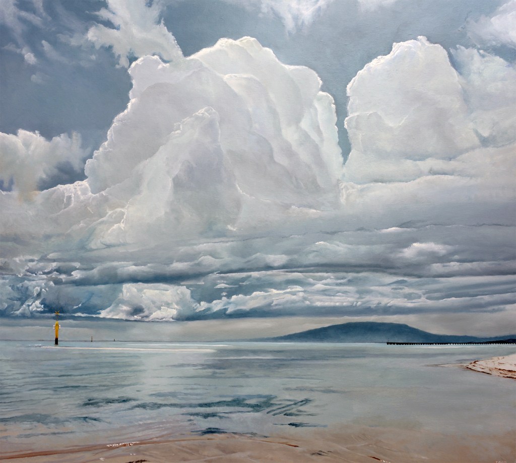 This is a painting of storm clouds forming over Rosebud pier. At this stage the sea was very calm, then minutes later the wind increased and rain and thunder came along.
